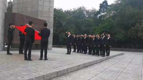 秋雨初歇,松柏苍翠。上午9时,长春烈士陵园庄严肃穆,吉林省暨长春市向人民英雄敬献花篮仪式在此举行。我院2019级新生在辅导员宗老师的组织带领下参加敬献花篮仪式,瞻仰烈士纪念碑,表达对革命先烈的深切缅怀和崇高敬意。