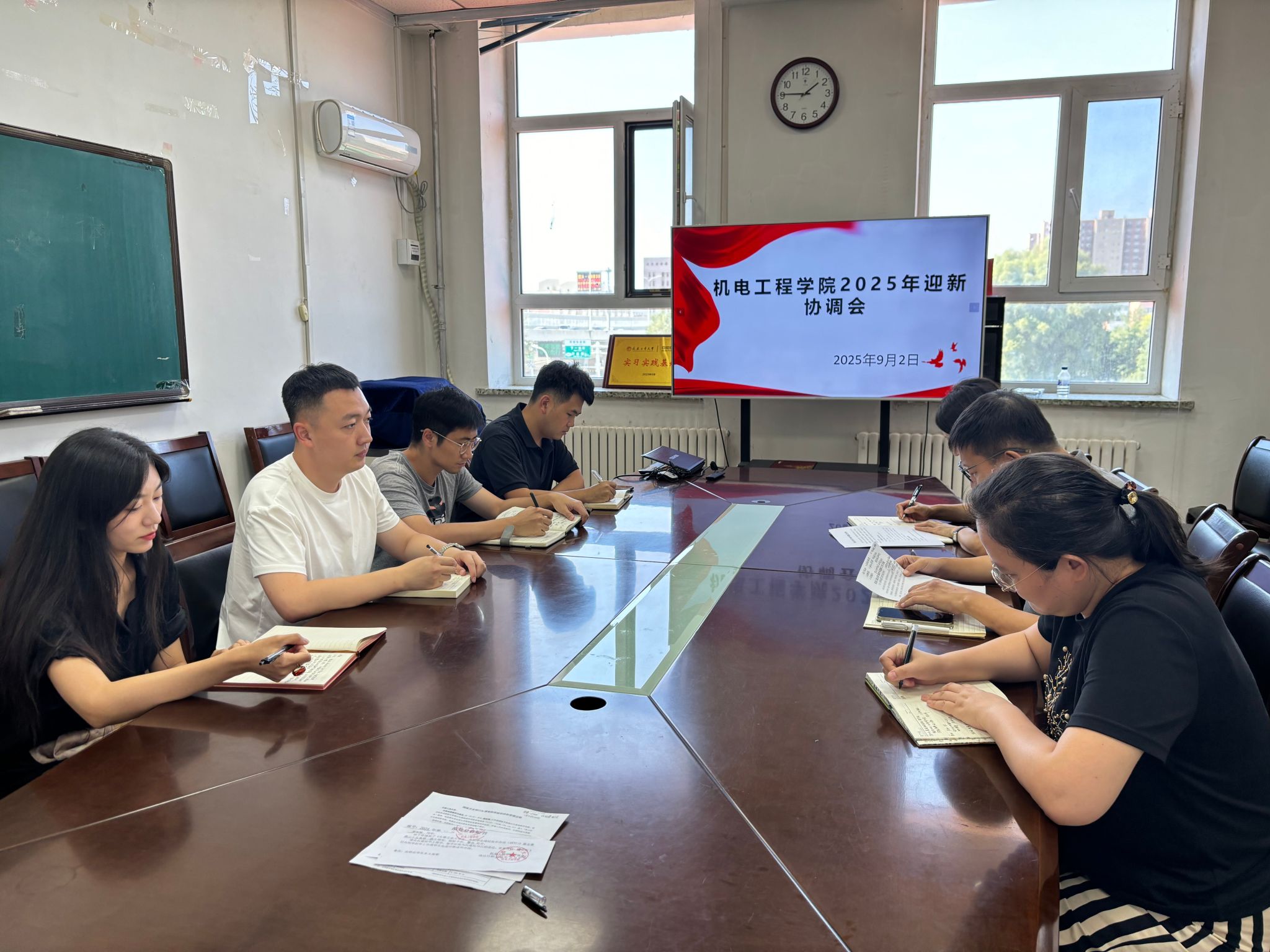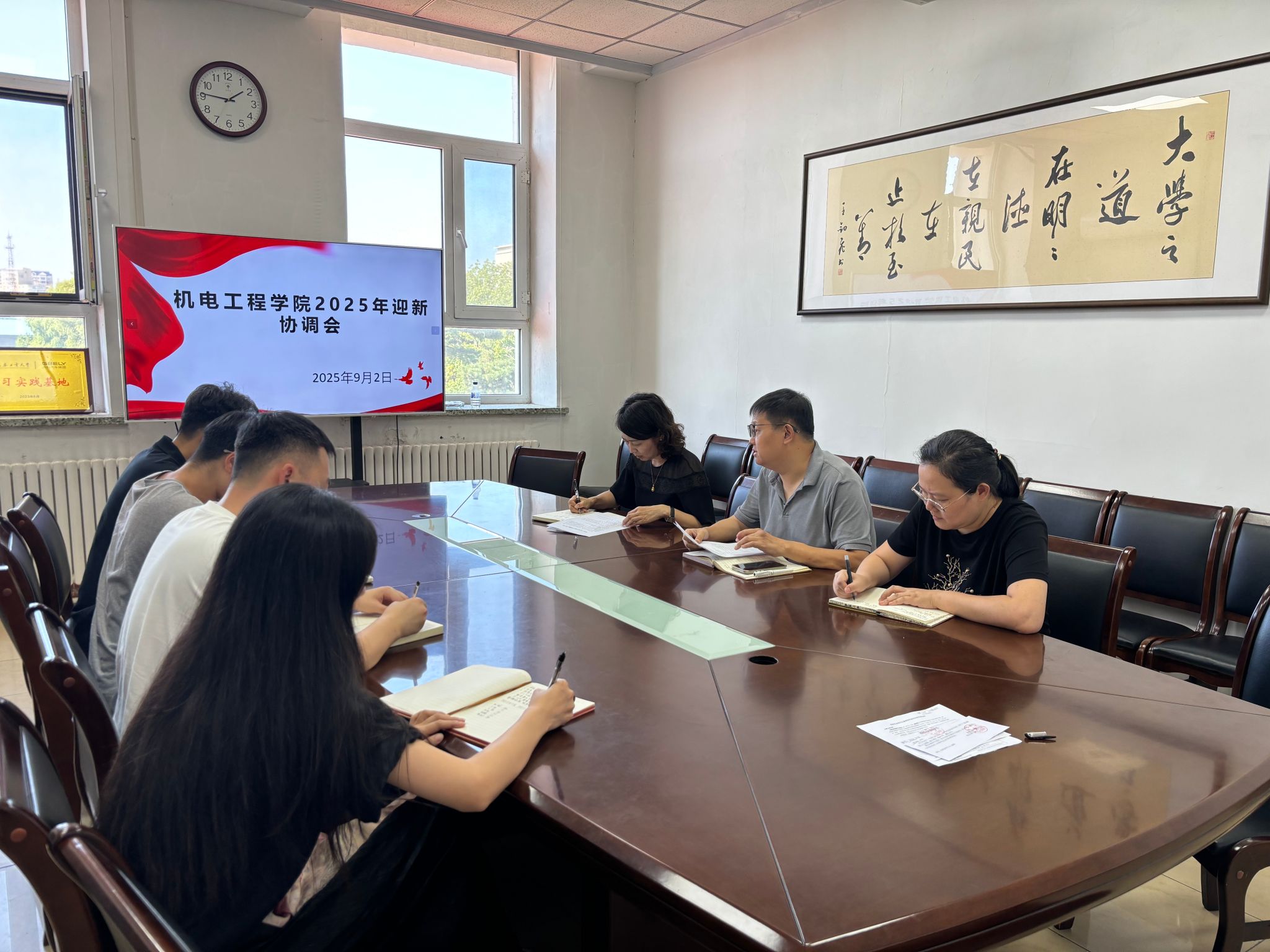 会议首先对迎新工作进行了细致梳理与全面部署,涵盖物料准备、场地布置、氛围营造,以及志愿者的选拔、培训和分工等各个环节。尤其强调新生报到流程的严谨性,将通过现场签到、校园一卡通与宿舍钥匙签收、晚点名等“三重保险”机制,确保每一位新生顺利、安全入学。