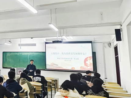 在交流讨论环节,与会党员积极分享学习体会,结合自身科研经历和未来发展规划,畅谈如何在实际工作中践行高质量发展理念。大家一致认为,高质量发展不仅关乎国家强盛,也是个人成长成才的重要舞台。唯有以“咬定青山不放松”的韧劲,持续学习、不断实践,方能在新时代谱写无愧于青春的奋斗篇章。
