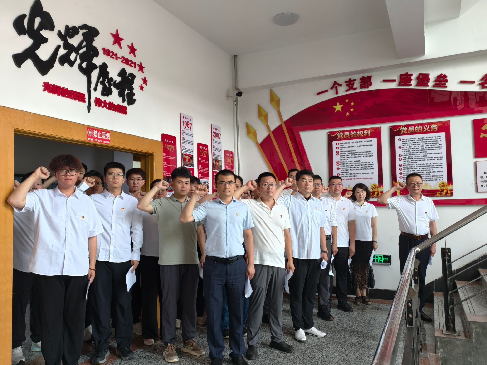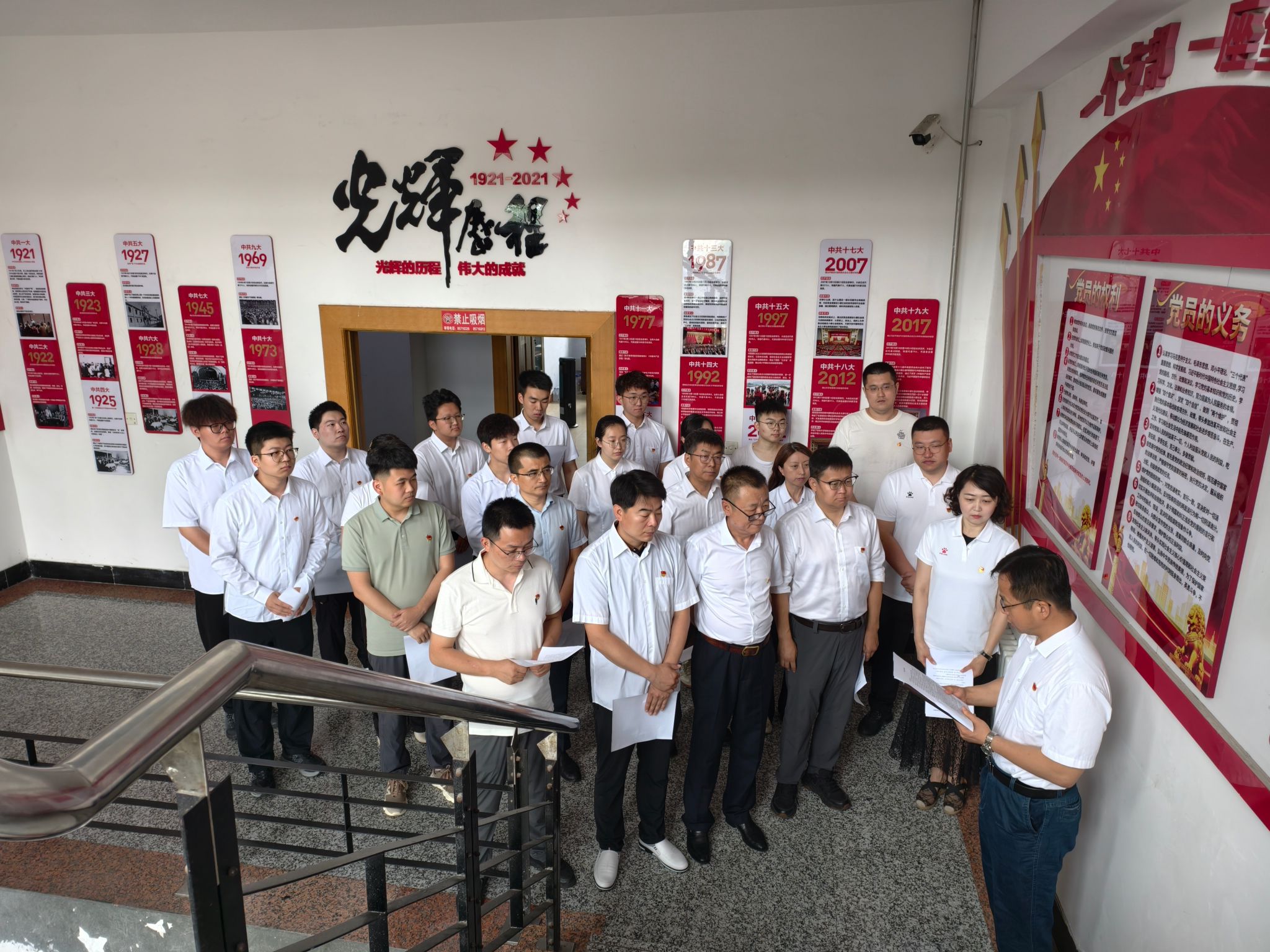党委在党建文化长廊组织了“初心如磐·仪式教育”活动。活动在党委书记张利军的领誓下拉开帷幕,全体党员面向党旗庄严宣誓,重温入党誓词,坚定理想信念,铿锵有力的誓言在长廊内久久回荡。