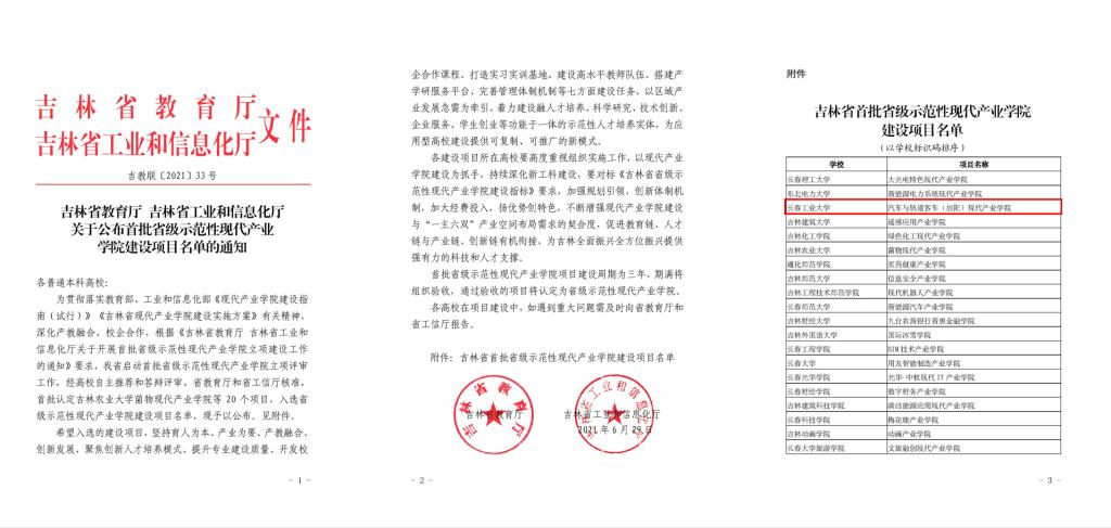 本网讯(通讯员 李迎春 谷东伟)6月29日,吉林省教育厅、吉林省工业和信息化厅下发了《关于公布首批省级示范性现代产业糖心视频概况
