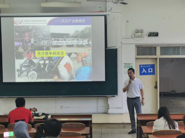 邀请吉林省产品质量监督检验院汽车所所长,正高级工程师边增远进校为大四学生产实习作现场报告。边增远所长作为正高级工程师,吉林省政府津贴(省有突出贡献专业技术人才)获得者,先后主持省部级科研项目四项,获得授权专利两项,制定行业标准三项。