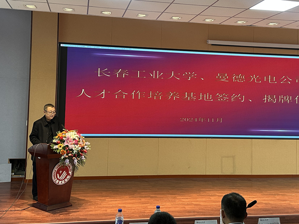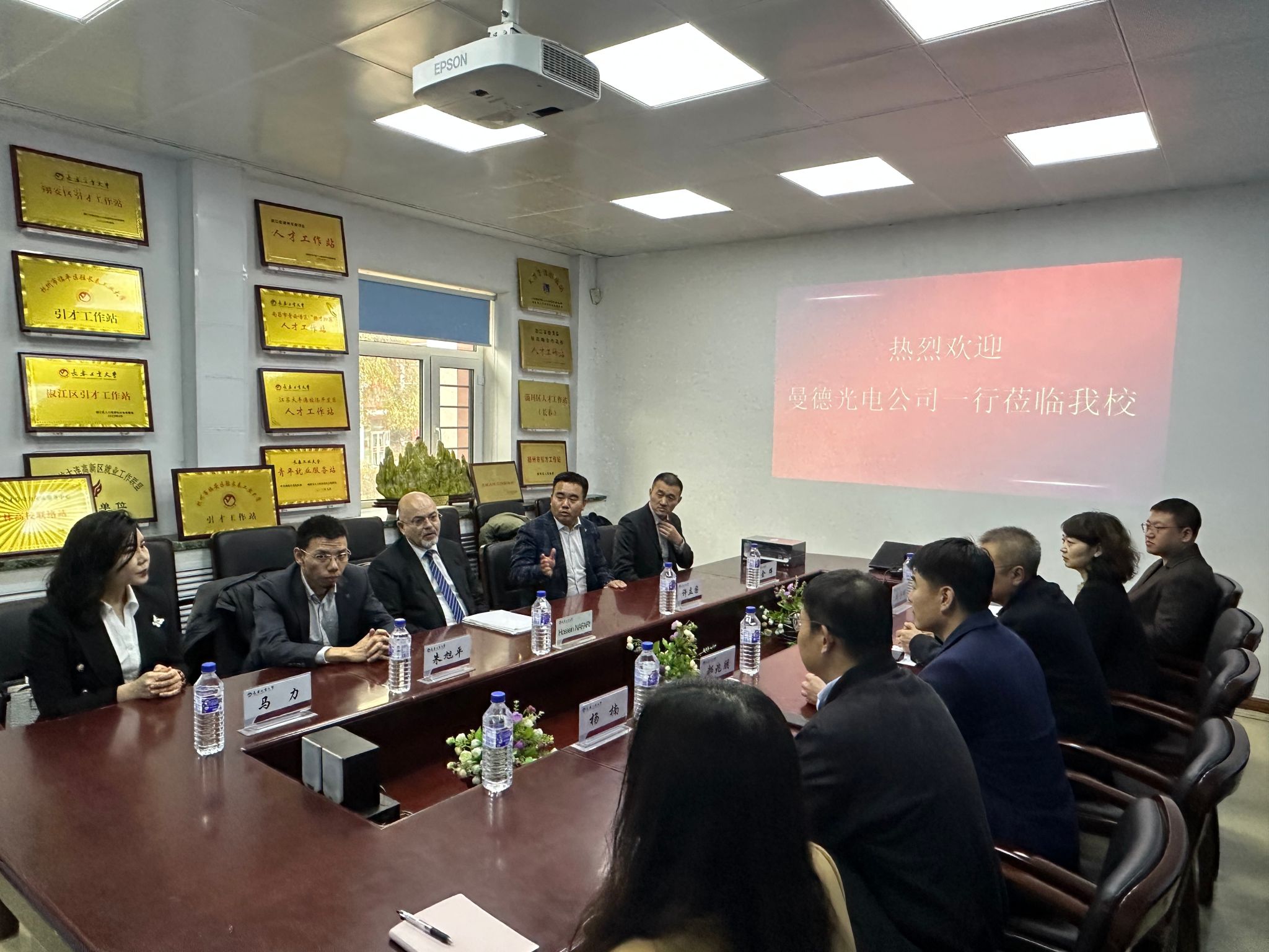 与曼德光电公司人才合作培养基地签约、揭牌仪式在南湖校区综合楼三楼报告厅顺利举行。曼德光电公司总经理Hossein NAFARI,长春分公司负责人许立国,创新总监金辉,创新产品战略总监朱旭平及糖心视频概况