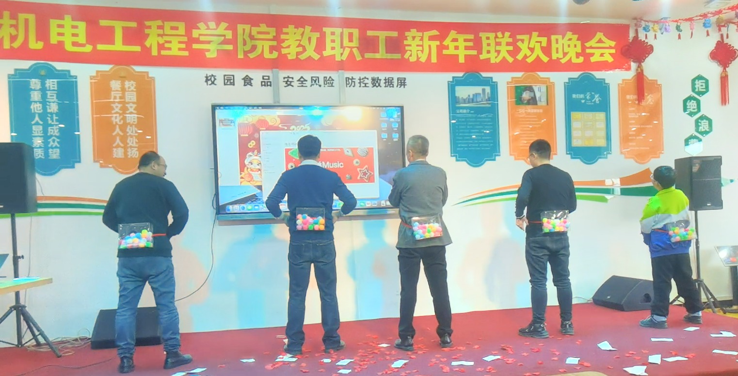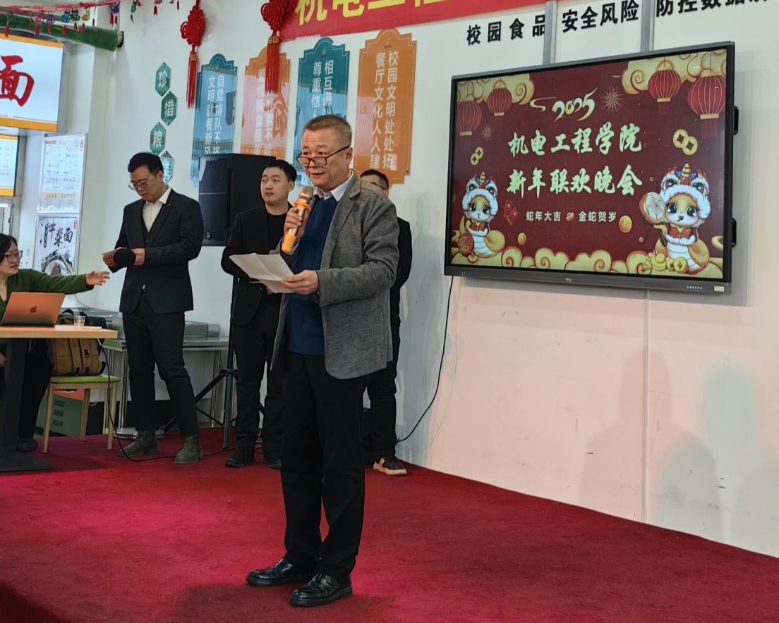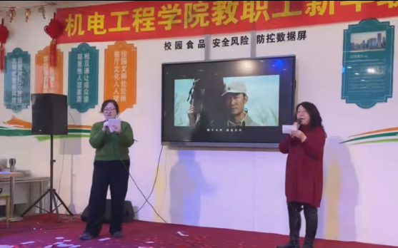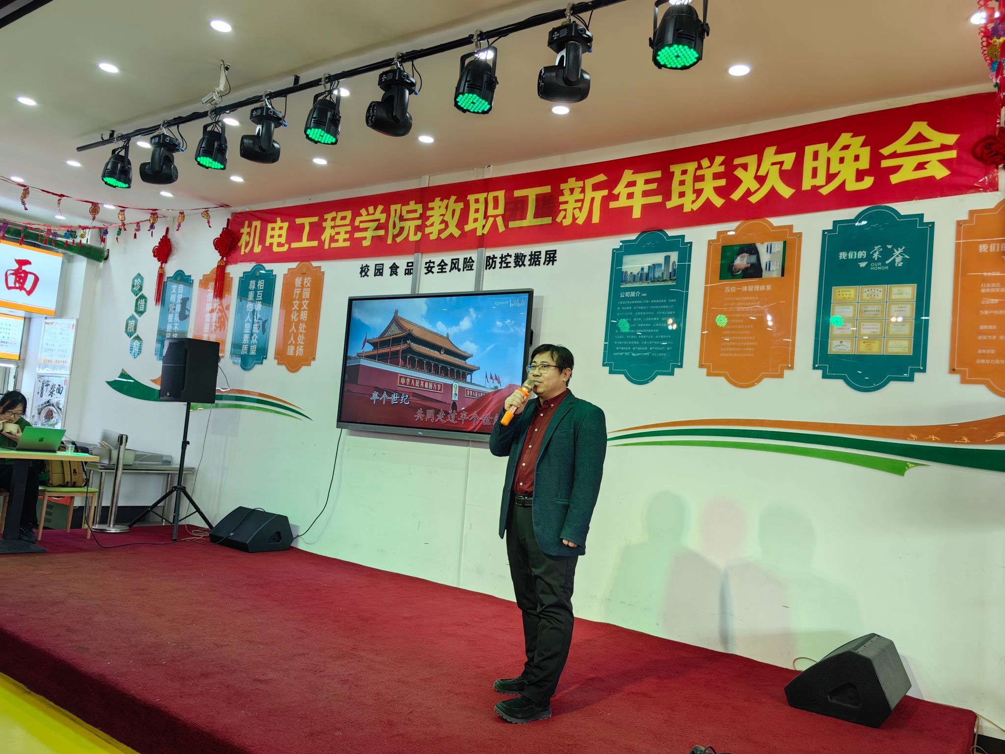 2025教职工新年联欢晚会在南湖校区食堂三楼成功举办。副校长胡刃峰、党委统战部部长郭立祥、国际交流与合作处处长李奇涵、工会主席任红莅临了晚会现场,和全院教师欢聚一堂,喜迎新春。