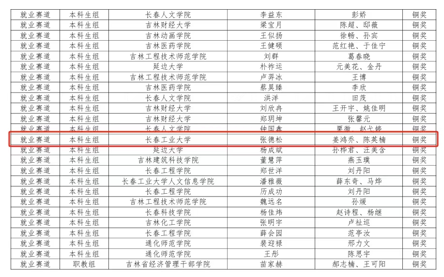 本网讯(通讯员 姜鸿乔)近日,《关于公布2024年吉林省大学生职业规划大赛获奖名单的通知》下发,由姜鸿乔老师指导、2021级学生张德松参赛的作品荣获铜奖。