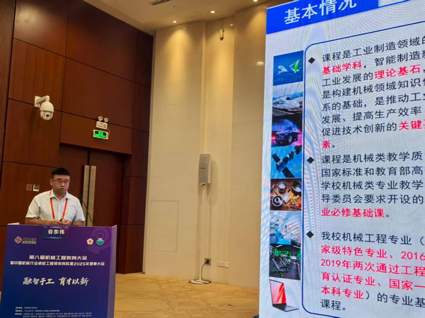 教师郝兆朋、谷东伟参加第一分会场进行工程教育专业认证的理念与实践专题学习。谷东伟受邀在第三分会场-机械制造类课程教学创新实践,以“产业引领、校企合、五措并进《机械制造基础》课程教学创新实践”为题进行报告。