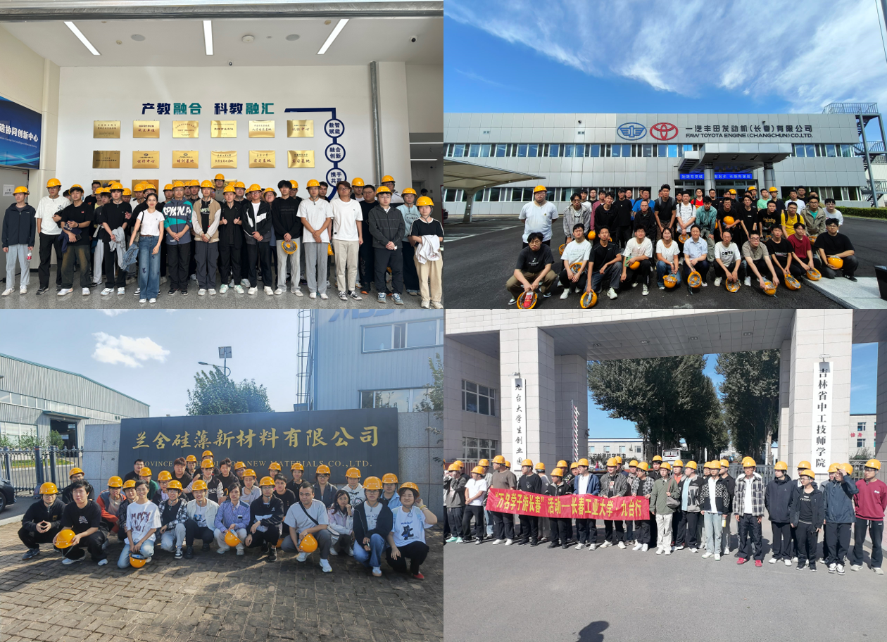 第2-3周,学生分组入驻五大实习基地,开启“沉浸式”企业实践。学生分别前往九台大学生创业园、长春泰盟机械制造股份有限公司、一汽丰田发动机、长春派格汽车塑料技术有限公司、长春汽车职业技术大学进行参观学习。