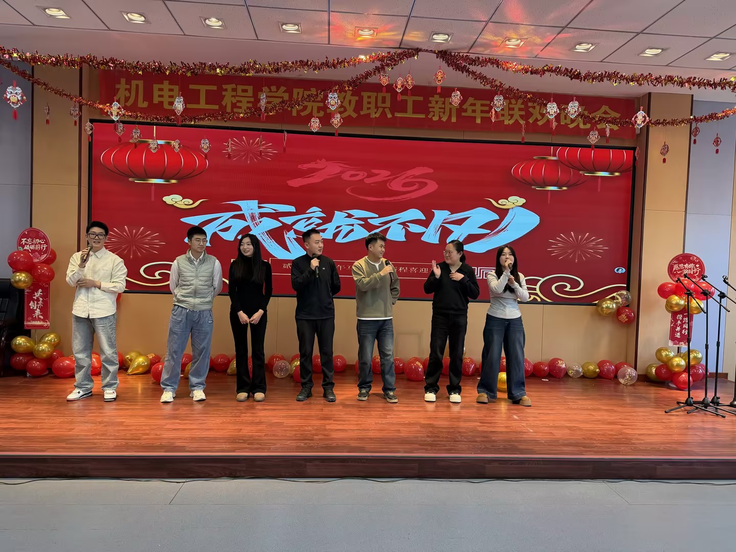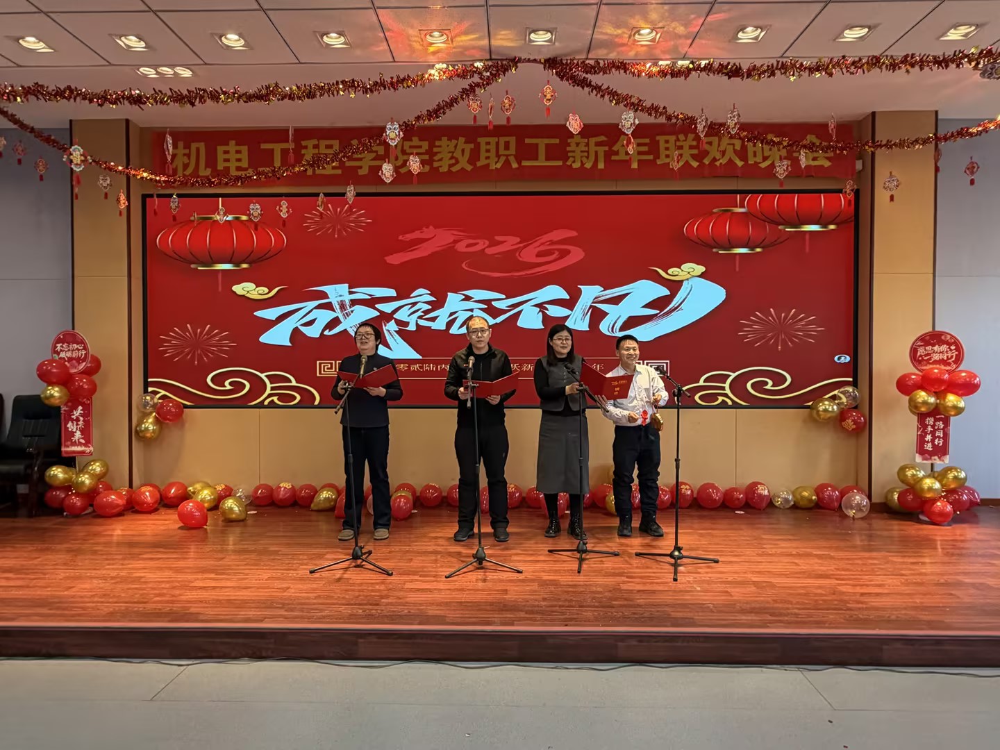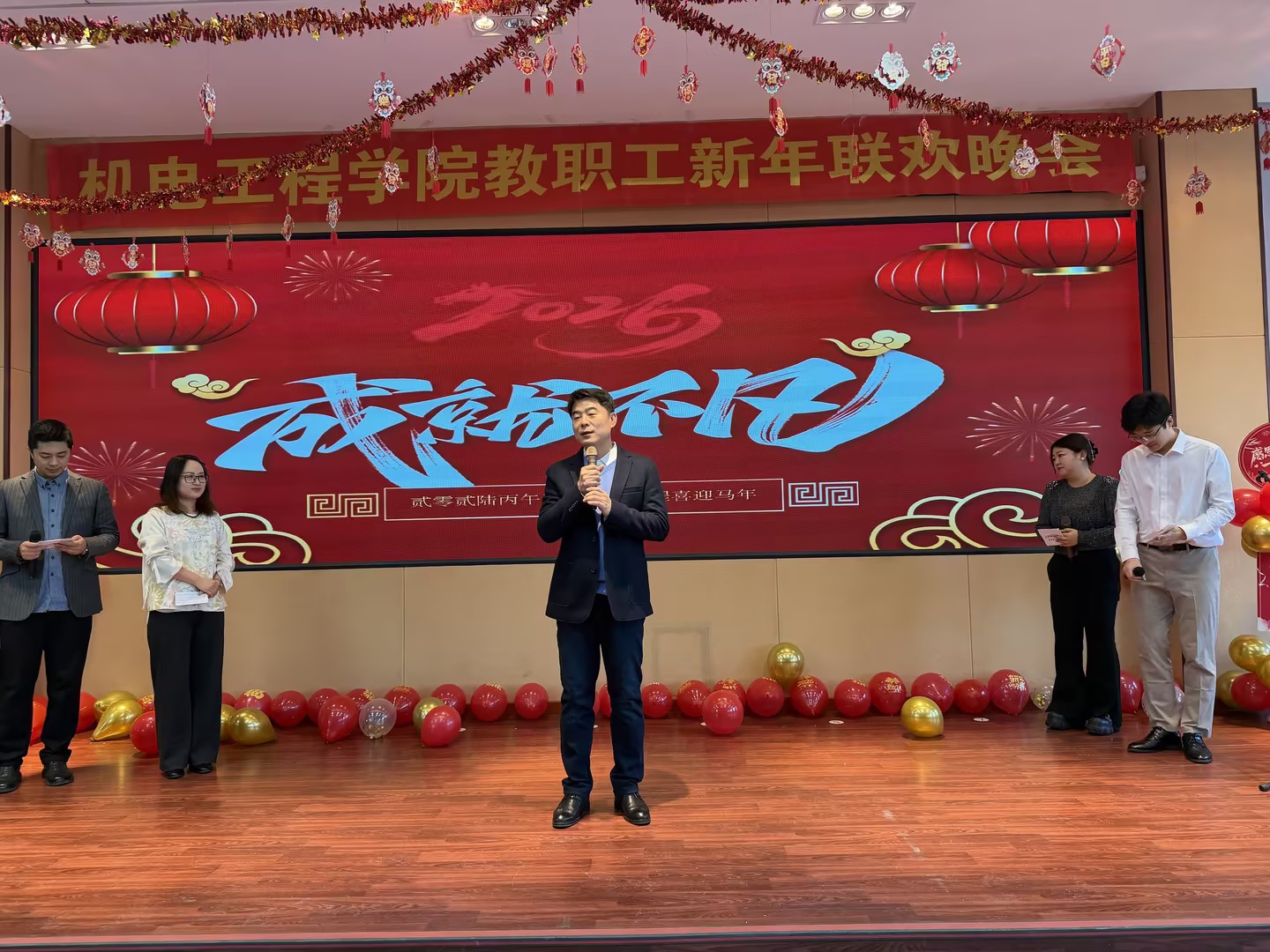 2026教职工新年联欢晚会在南湖校区综合三会议室成功举办。学校工会主席任红莅临现场,和全院教师欢聚一堂,共迎新春。