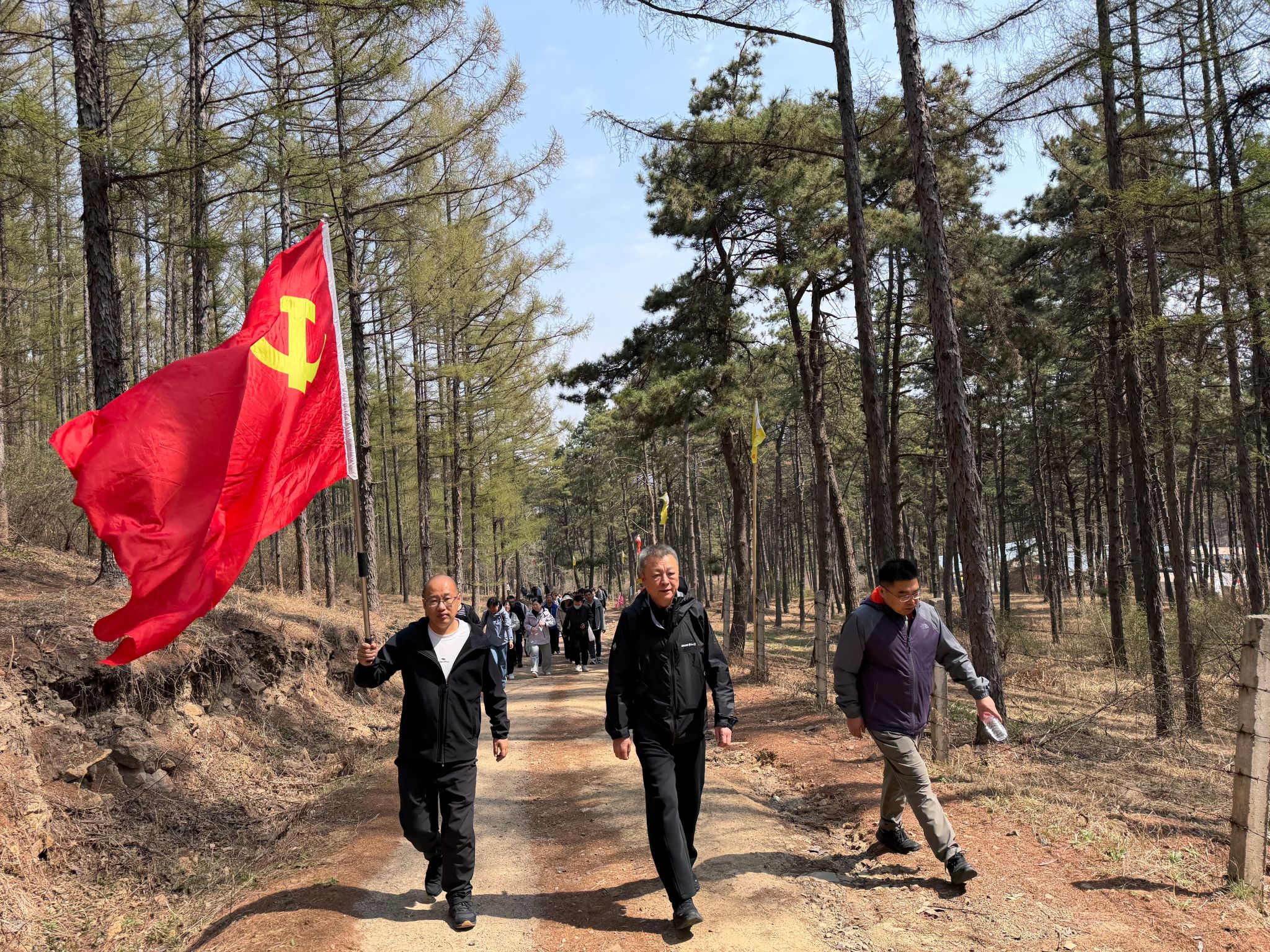 还组织了徒步登马鞍山、重走抗联路环节。大家追寻抗联先辈的足迹,怀着对历史与先烈的崇敬之情,重温艰苦卓绝的峥嵘岁月,进一步提升了党员干部的党性修养,坚定了理想信念,切实增强了党组织的凝聚力和战斗力。登山途中,老师们饶有兴致地一边采摘野菜,不少年轻教师首次近距离认识了许多山间植物,欢声笑语不断。