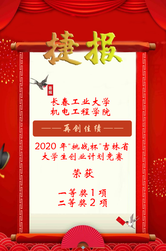 本网讯(通讯员 王潇猇)由共青团吉林省团委、吉林省教育厅、吉林省人力资源和社会保障厅、吉林省科学技术协会、吉林省学生联合会主办的2020年“挑战杯”吉林省创业计划竞赛中,我校共计7件作品获奖,其中院共3件作品获奖,荣获一等奖1项,二等奖2项,取得优异成绩。