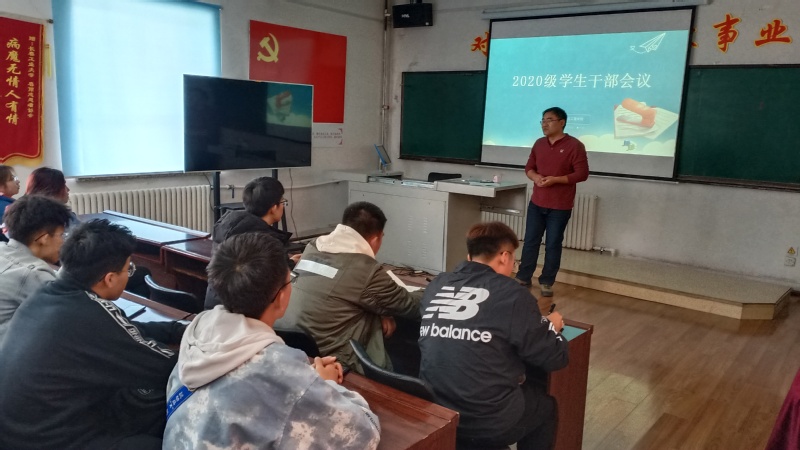 在主楼1462会议室召开2020级学生干部会议。本次会议由2020级辅导员宫磊老师主持,2020级全体学生干部参加。
