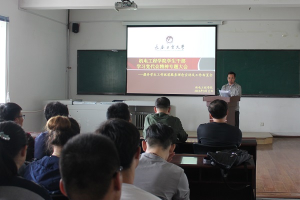 全体学生政工干部要深入学习党代会精神,牢固树立学生工作优质服务理念,并希望全体学生干部能够做好提升学生工作优质服务的助推器,在今后的学习和工作中起到桥梁和纽带的作用。