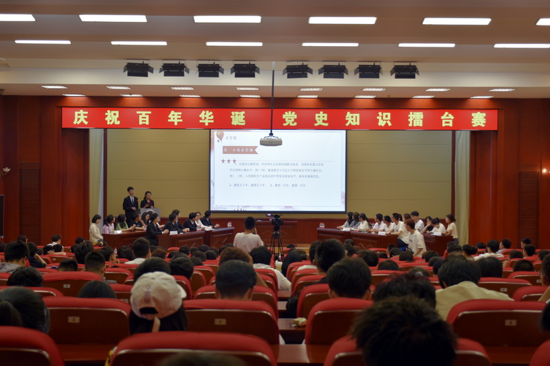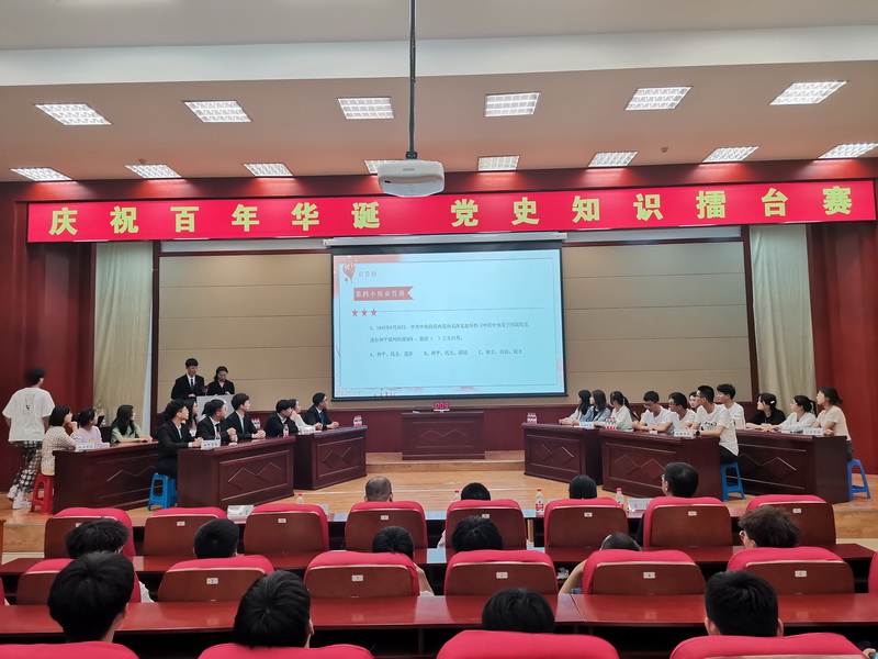 本网讯(通讯员 田寿杭)为深入学习贯彻习近平总书记在党史学习教育动员大会上的讲话精神,在党的100周年华诞之际,热情讴歌中国共产党领导中国革命和建设取得的伟大成就。6月9日,我院于南湖校区学术报告厅举办了“庆祝百年华诞”党史知识擂台赛。学生工作处副处长肖永辉、校团委宣传部部长范婷婷、糖心视频概况